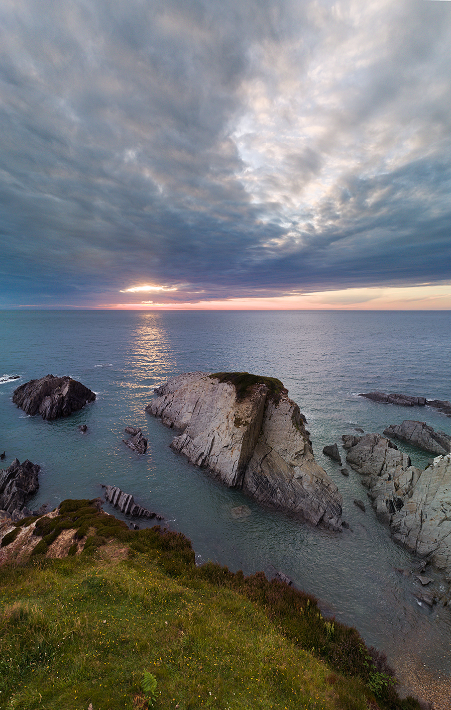 A couple of hours later I have walked down ready for sunset , up with the drone first and I have flown around to the right towards Bull Point lighthouse . single frame